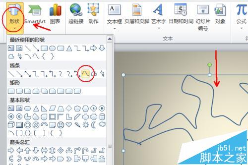1、打开PPT,清空版面,设置好背景图片,点击插入选择曲线形状,使用曲线绘制知识树的树干和主体,如图所示,边画边想像真实的树,可以画的高大一些,最后在适当的压缩一下