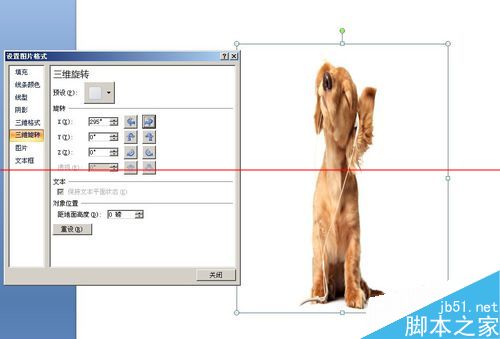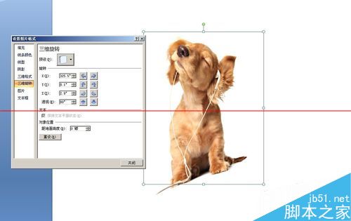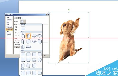 4、在“设置图片格式”中,选择“三维旋转”。里面可以进行角度控制的旋转。