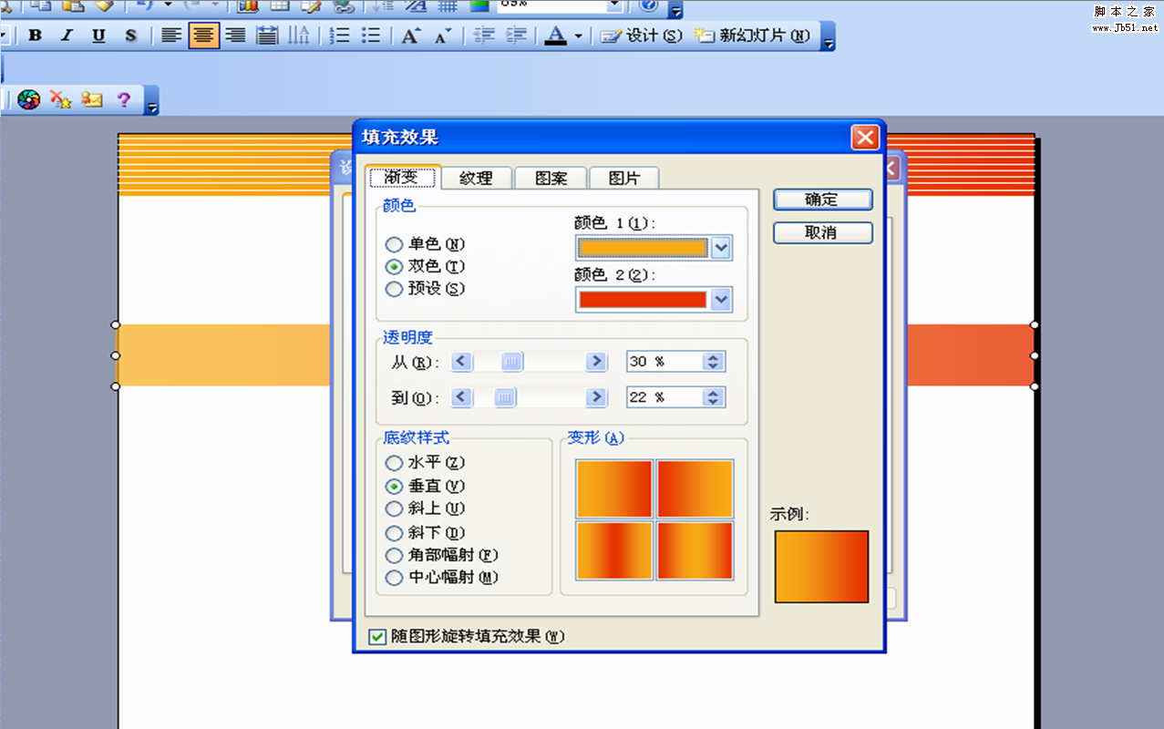双击矩形,填充颜色,双色(找两个自己看着舒服的),垂直:
