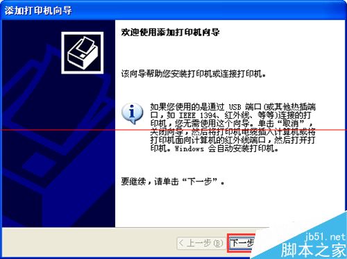 2、在弹出的“添加打印机向导”对话框中,点击“下一步”。