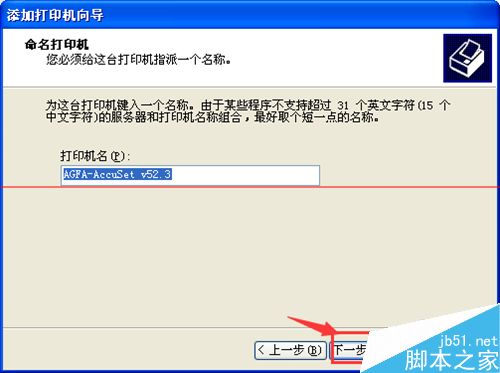 6、打印机名可任意修改,也可保持不变,点击“下一步”。