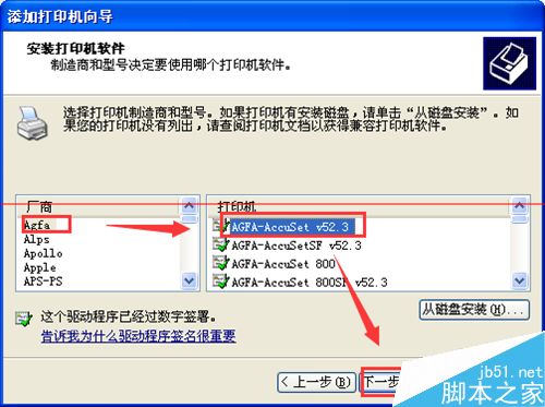 5、在“安装打印机软件”页面,任意选择一家和任意一款打印机,如果已经选择可以不做修改,点击“下一步”。