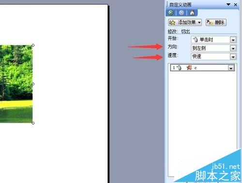 5、设置效果参数:方向--设置为到左侧;速度--根据自己喜欢选择