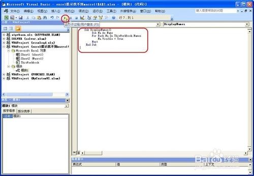 答:中了宏病毒,首先 在Excel界面点Alt+F11,进入VBE窗口,在左边“工程”窗口中点选出问题的那个工作簿,然后插入一个模块:输入 Sub DisplayNames() Dim Na As Name For Each Na In ThisWorkbook.Names Na.Visible = True Next End Sub 然后点“运行... >>详细