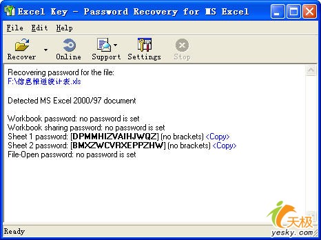 有许多专门为破解Excel各种密码而制作的软件,Excel Key与Advanced Office Password Recovery就是其中的佼佼者。它们的使用方法简单且破解速度极快。