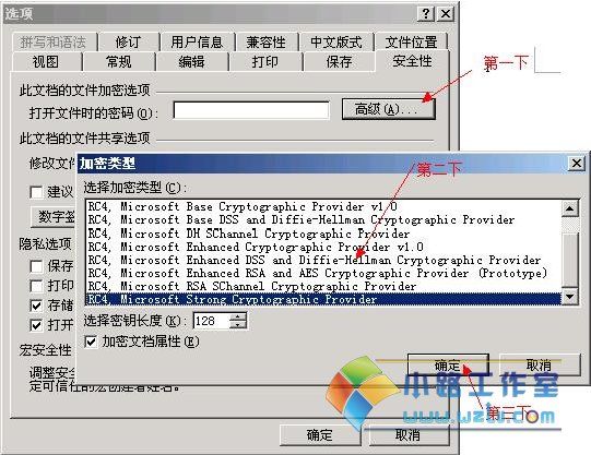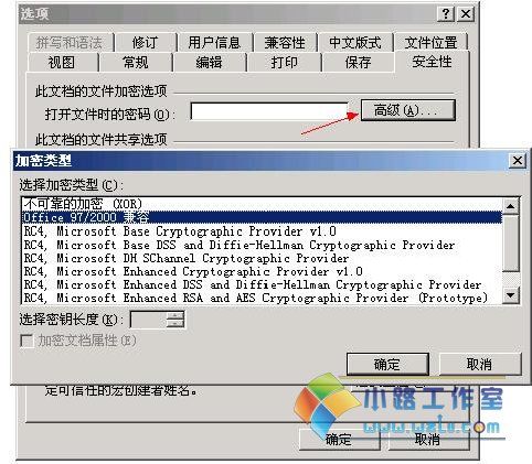 现在网上可以找到一个比较流行的破解Office 密码的Office Password Remover (另有一个比较常用的:Accent Office Password Recovery )小软件,这个软件很小,但是对使用Office97/2000兼容模式加密的文件,却几乎做到了秒杀的程度。我自己下载过这个软件试过,给一个文档设相同的密码、不同加密类型的情况下,Office97/2000兼容模式是相当容易破解的,而如果是使用其它的加密方法:比如随便选择一个密钥长度为128 的加密类型,当使用这个软件破解软件时就会变得很难、很难……