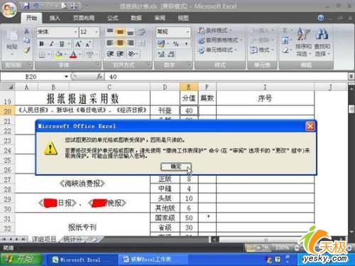 Excel弹出“您试图更改的单元格或图表受保护,因而是只读的。若要修改受保护单元格或图表,请先使用‘撤消工作表保护’命令(在‘审阅’选项卡的‘更改’组中)来取消保护。可能会提示您输入密码。”窗口,如图1。