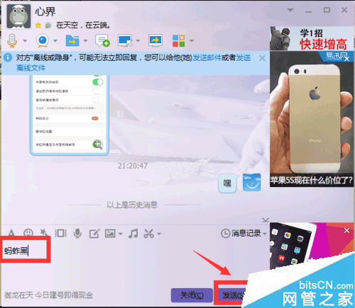 5、现在,又发送一个信息,看看对方能否收到,如图: