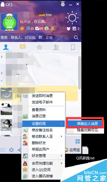 图中是另一个刚才被屏蔽的QQ的信息框。