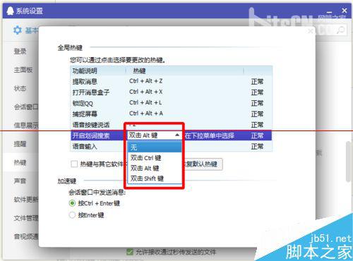 6、如果不喜欢双ctrl的方式,或者避免热键冲突,还可以在下拉菜单中改用其他方式