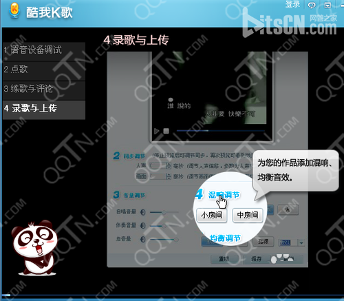6、可以混响调节,小房间的选择小房间按钮,房间大的可选择中房间按钮;