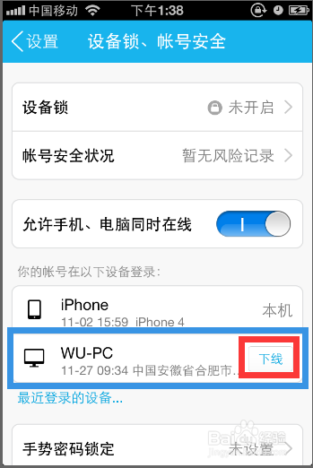 答:设置安全与隐私里。不允许手机电脑同时在线就好了。而且登陆设备管理里面也有下线的选项。 >>详细