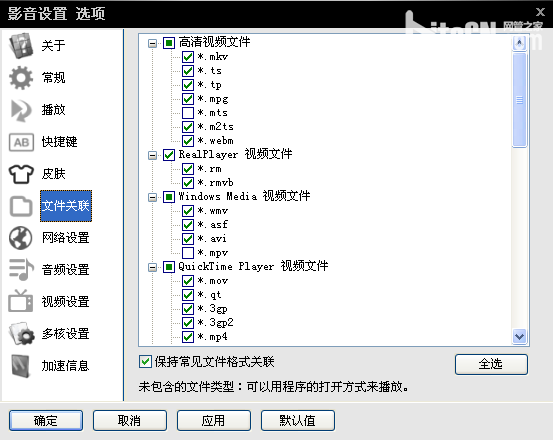 文件关联里,可以很明显的看到该软件的默认支持格式!