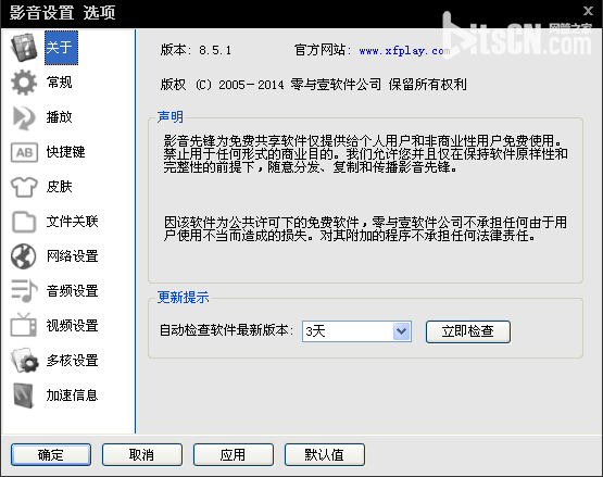 关于界面有本本信息和公司声明,最下面是更新提示,我给关了,感觉此类软件无需那么新,够用即可!这个你懂的!