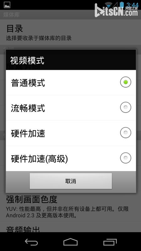 视频模式,和PC端类似,支持多种模式和硬件加速!