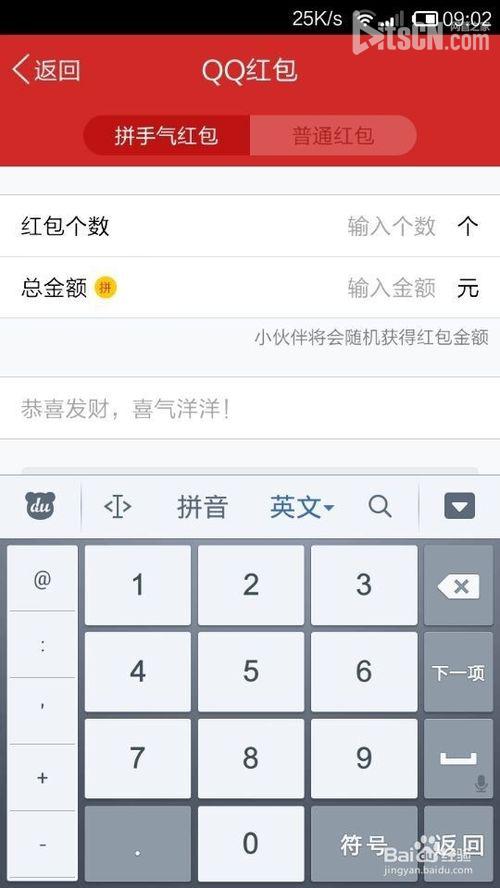 2、分别有拼手气红包和普通红包(拼手气就是红包里面的不一样,多少不一,而普通红包就是等额的),我们选择数量点击支付
