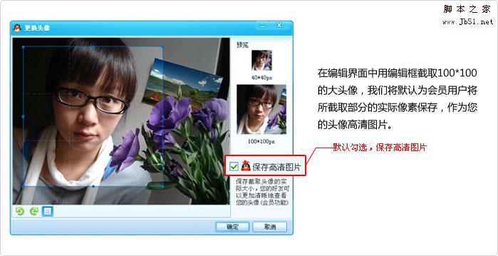 您需要将QQ版本升级到2009 正式版 SP5才可以在上传自定义头像的同时保存头像高清图片,点击下载最新版本QQ。