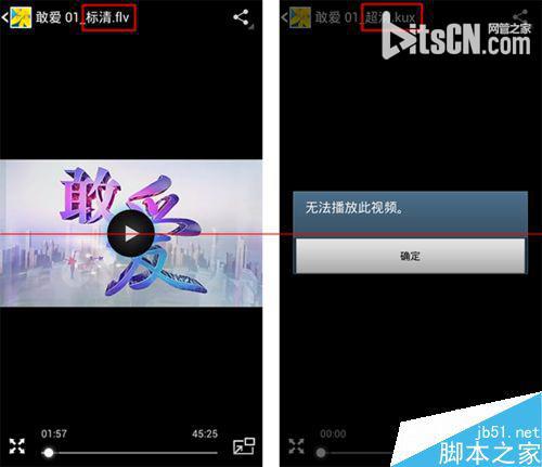 2、如下图所示:小Y给大家演示,同样在优酷下载的一部片,放到手机上,标清flv和高清mp4在任意播放器,都可正常播放。而超清kux格式,无论是用优酷手机版,还是其他播放器,均无法播放此视频。