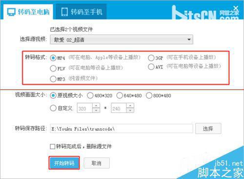 2、此时会进入转码格式页面,操作方法如上所同,选择转码格式之后,点击“开始转码”即可。下载好的视频,转码就很快了。