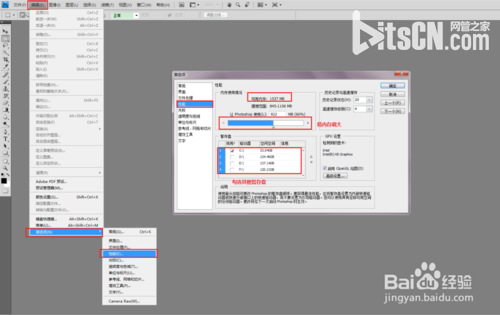 1、我们使用Photo CS4打开一张图片,出现“无法完成请求,因为程序错误”的对话框。我们单击编辑--首选项--性能,打开性能界面将内存调大,勾选其他暂存盘尝试。