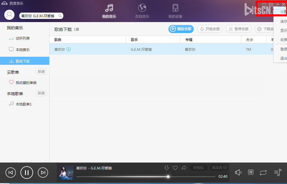 1、上面很清楚的介绍的如何使用百度音乐播放器下载歌曲,现在来看看下载的歌曲保存文件夹位置。