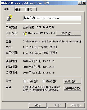 警告:如果提示从网站打开或保存 .chm 文件,则仅在需要此文件且信任提供此文件的网站的情况下进行此操作。