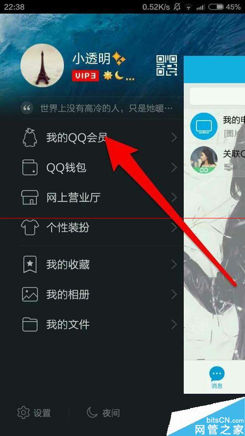1、在手机QQ页面向右划,也就是在设置的哪一页面,找到“我的QQ会员”点开之后可以进行签到,签到成功可以领取成长值