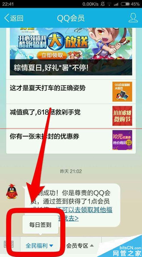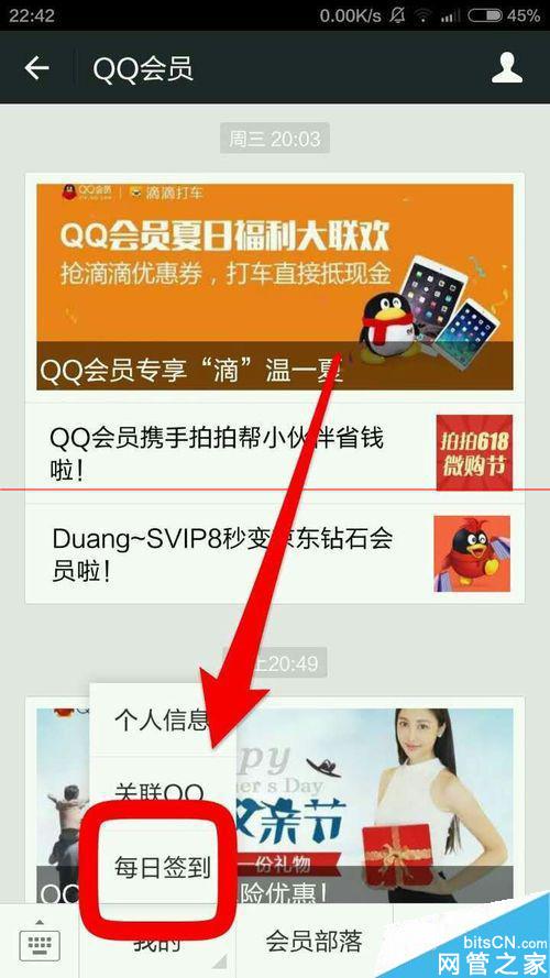 6、在QQ会员官网进行签到,也可获取成长值