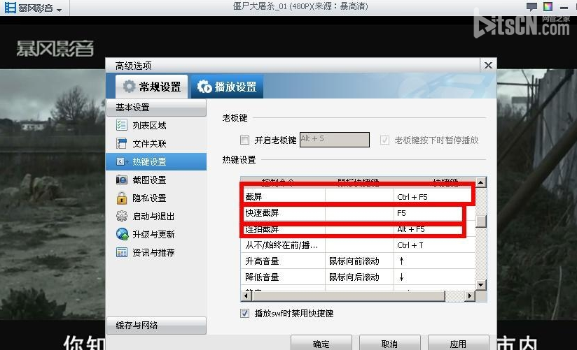 暴风影音截图的快捷键是ctrl加F5键,快速截屏是F5键,而连拍截屏是alt加F5键。