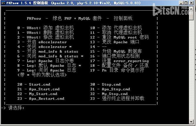 此时计算机会弹出一个DOS对话框,这个就是PHPnow的控制面板对话框。
