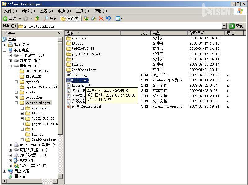 用户可以找到这个文件夹后打开。在前文中,笔者是把这个软件安装在“E:\webtestshopex”目录下的。
