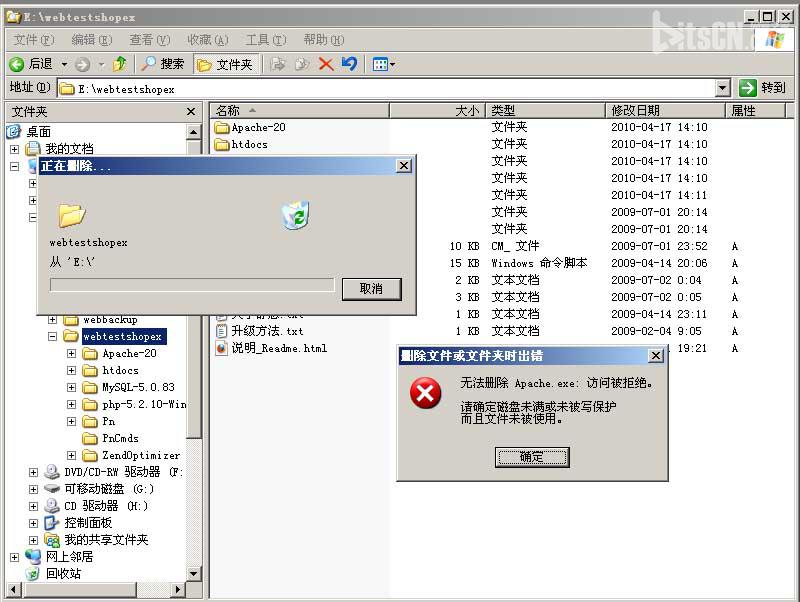 这是由于PHPnow的服务没有被停止,所以计算机拒绝删除这个文件夹。