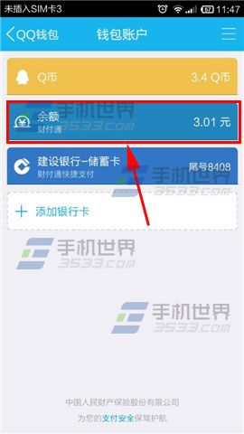2)点击下方的【钱包账户】,再点击【余额】(领到的红包是自动收入到QQ钱包的财付通余额里的哦)。(如下图)