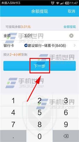 3)输入提现金额,接着点击【下一步】,然后输入自己的支付密码,确认后就可以提现成功啦。(如下图)
