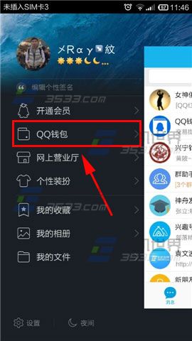 1)打开手机QQ,点击左上角的【头像】,在菜单栏里找到【QQ钱包】的按钮点击进去。(如下图)