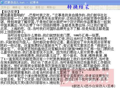 然后会弹出一个对话框,直接点击“确认”按钮,软件会自动弹出转换结果,如下图: