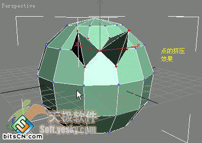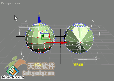 collapse(塌陷)命令只能应用在点,线,轮廓线和面层级中,也就是将选择的多个子物体塌陷为一个子物体,塌陷的位置是原选择集的中心。比如框选一些点,然后单击此钮,这些点就会塌陷为一个点(如图52所示)。