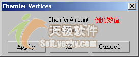 其次是chamfer(倒角),这个命令相当于挤压时只左右移动鼠标将点分解的效果(如图60所示),它的设置框中只有一项就是倒角数值(如图61所示)。