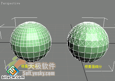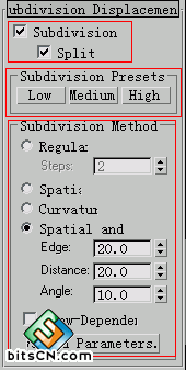 勾选splitmesh(分离网格)复选框后,多边形在置换之前会分离成为独立的多边形,这有利于保存纹理贴图,不勾选的话多边形不分离并使用内部方法来指定纹理贴图。