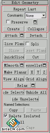 这个卷展栏中的设置是可用于整个多边形物体的,不过有些命令是有先进入相应子层级限制的(如图51所示)。其中特别常用的命令我们已经在前面讲了一些,图中的红框区域内的命令是还没有涉及到的,这里我对它们进行详细讲解。