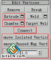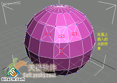 在边层级下可以使用insertvertex(插入点)命令在边上任意插入点,当按下此钮后,物体上的点会显示出来。