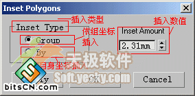 inset(插入)命令是在选择的面中再插入一个没有高度的面(如果76所示),打开设置窗口(如图77所示),它有两种插入类型:一种是根据选择的组坐标进行插入;另一种是根据单个面自身的坐标进行插入。