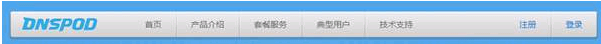 访问http://www.dnspod.cn网站,在DNSPod官网首页的右上角,有【注册】,如下图所示,点击【注册】按钮