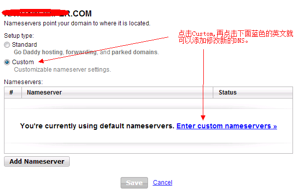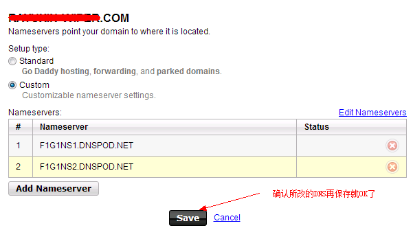 4:完成这一步之后你在godaddy.com的工作就已经完成了,之后提到你所改的DNS那解析你的域名了。