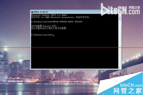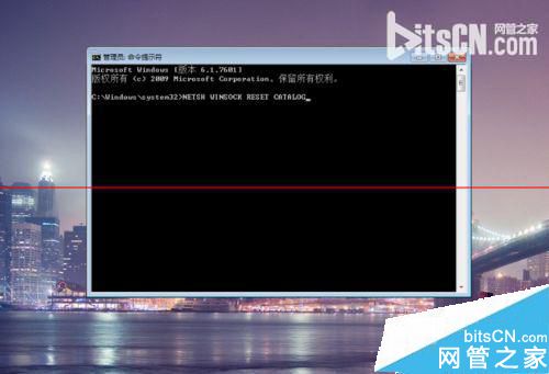 2、在命令行中我们输入:“NETSH WINSOCK RESET CATALOG”。