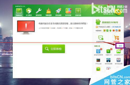 1、我们打开360安全卫士,然后在功能大全中,选择“更多”,如图示。
