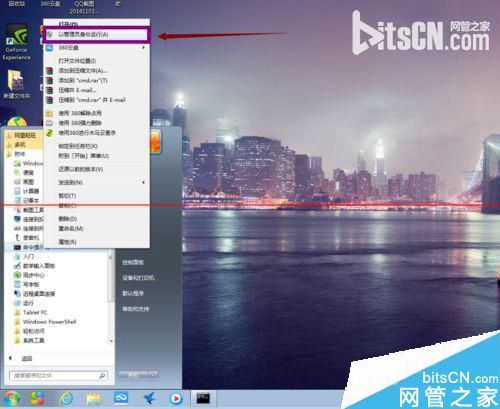 1、我们在开始菜单栏中的附件中找到“命令提示符”,然后点击右键选择“以管理员身份运行”。