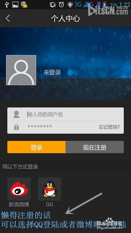 这个是可以直接用QQ账号或者微博账号登陆的,对于像我这样的懒的注册的懒人来说,简直是福音啊-。-