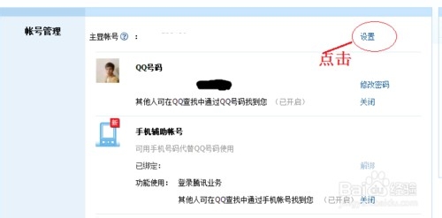 2、然后点击一下:更改主显账号。更改主显账号在你的QQ号码旁边,红色的那个标志就是更改主显账号。