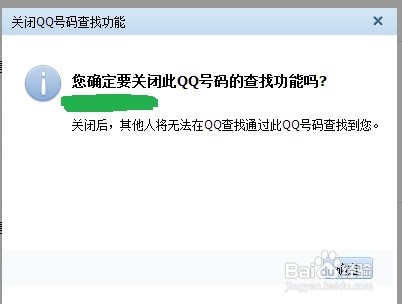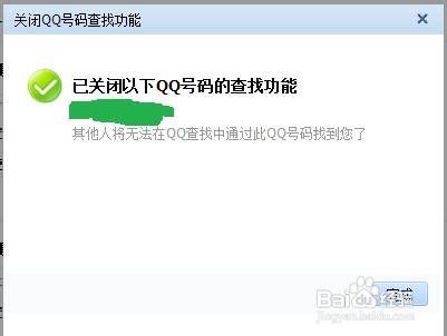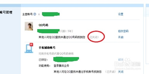 6、完成后,在QQ号码哪里后面有个关闭。点击一下关闭就行。关闭后,你的QQ号码就变成你的手机号码了。别人查找你的号码,只能通过手机号码了,QQ号码不行了。如果你不想关闭的话,就不用关闭,